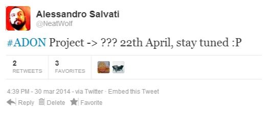 Non voglio (e non posso) pubblicare nulla per ora, ma segnatevelo bene: fine Aprile, GMI, ADON riparte. Nuovo nome, engine rimesso a nuovo e chissà cos’altro. Salivazione a bada, ragazzi, ma ho già visto delle cose che voi uomini…