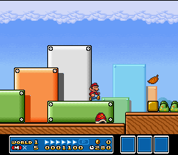 Il Koopa Troopa rosso incontrato poco dopo si dimostra più intelligente del passivo Goomba; saltandoci sopra, inoltre, non scompare ma lascia un guscio! Un suo uso è intuibile dal blocco che si trova più a destra, attivabile solo spingendoci il guscio contro: il giocatore capisce che
